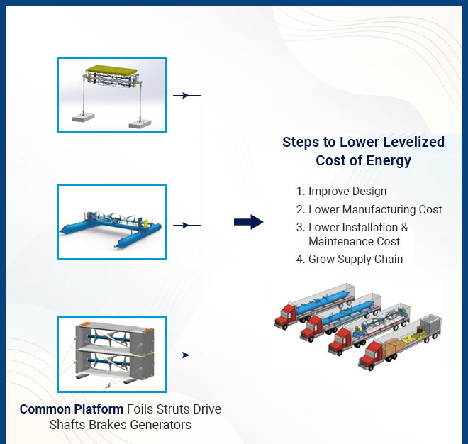 Efficiencies in the supply chain are achieved by utilizing system components similar to those found in the automobile or agricultural industries, such as generators, struts and bearings.